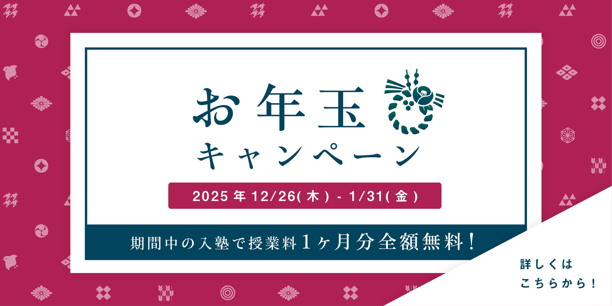 そこで、多くの受験生がロケットスタートを切っていただくために、1ヶ月授業料が無料になる「お年玉キャンペーン」を実施いたします。