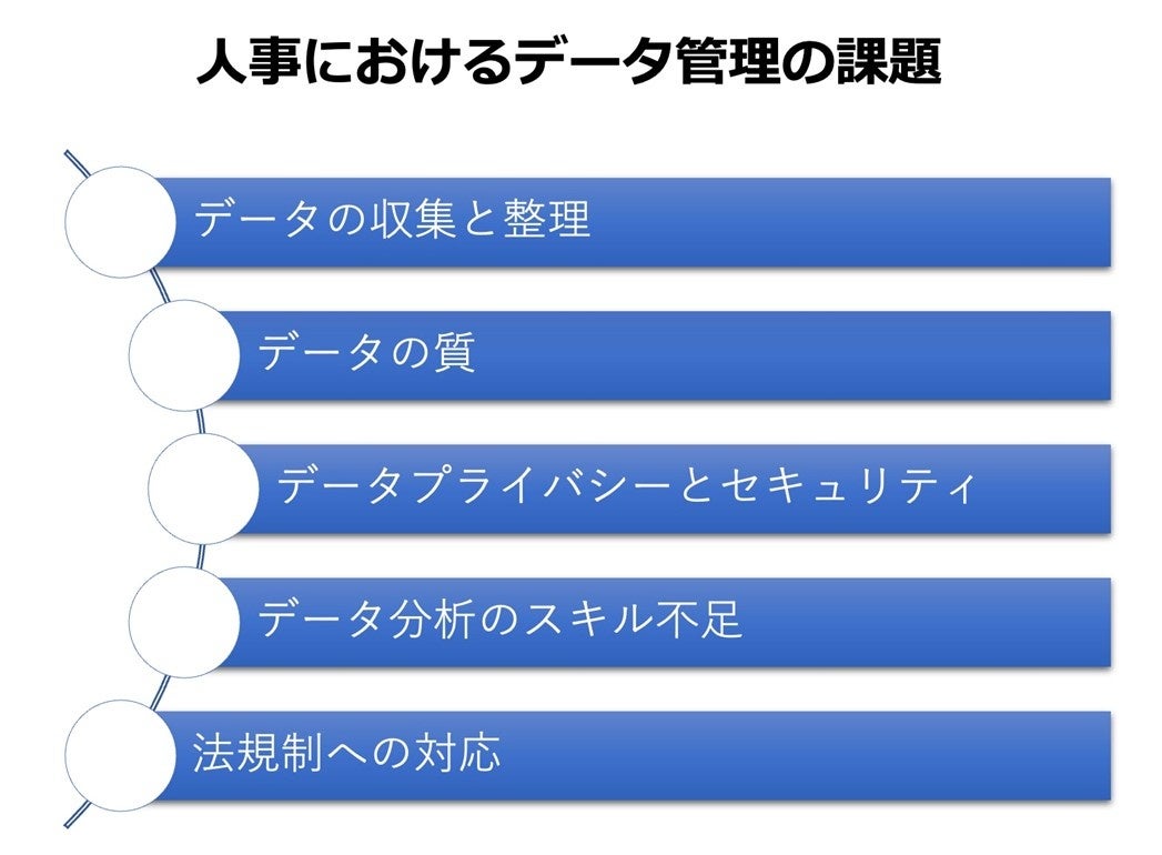人事におけるデータ管理の課題は以下のような点が挙げられます: