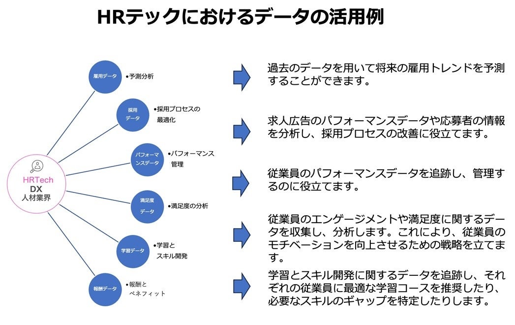 HRテックは、従業員のパフォーマンスや離職率、採用成功率などを分析し、人事戦略の策定に役立てるためのデータを提供します。これにより、会社はより効果的な人事戦略を立てることが可能になります。