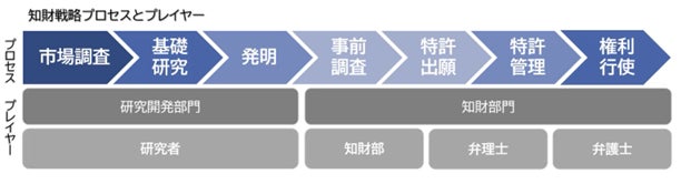 特許業務には、市場調査や基礎研究から特許出願まで幅広い業務があり、それに伴い様々なプレイヤーが存在します。知財業務の大きな課題は、こうした知財戦略プロセスの複雑さや、プレイヤー間のコミュニケーションギャップにあります。