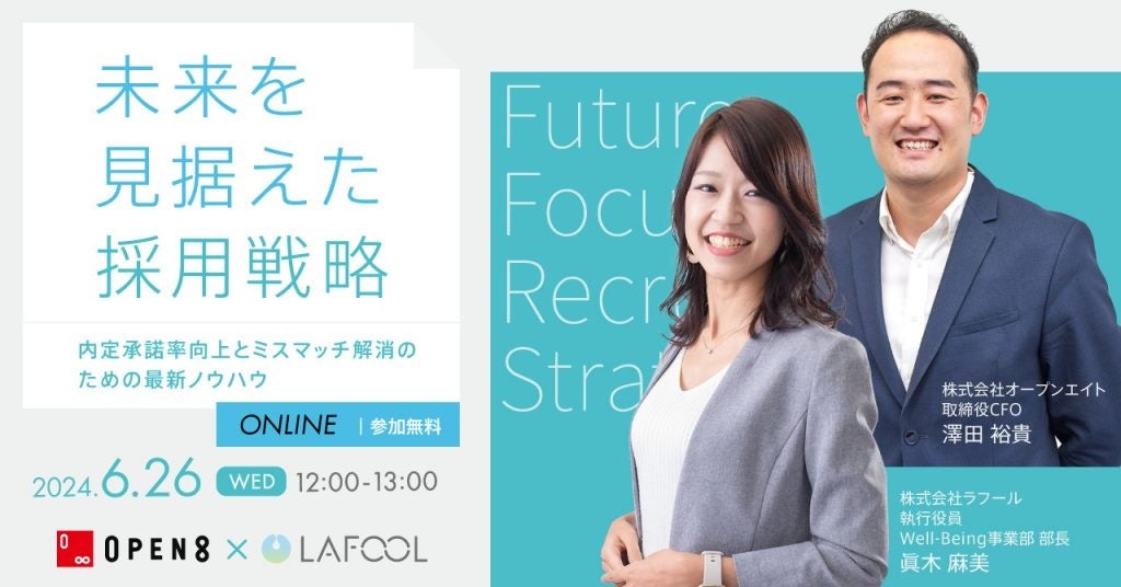 本共催ウェビナーでは、内定承諾率の向上とミスマッチ解消をテーマに、メンタルデータテックを活用して約2000社の組織と個人の行動変容を実現した株式会社ラフールと、800社以上の動画内製化を支援してきた株式会社オープンエイトが、理想の採用プロセスについて詳しく解説します。