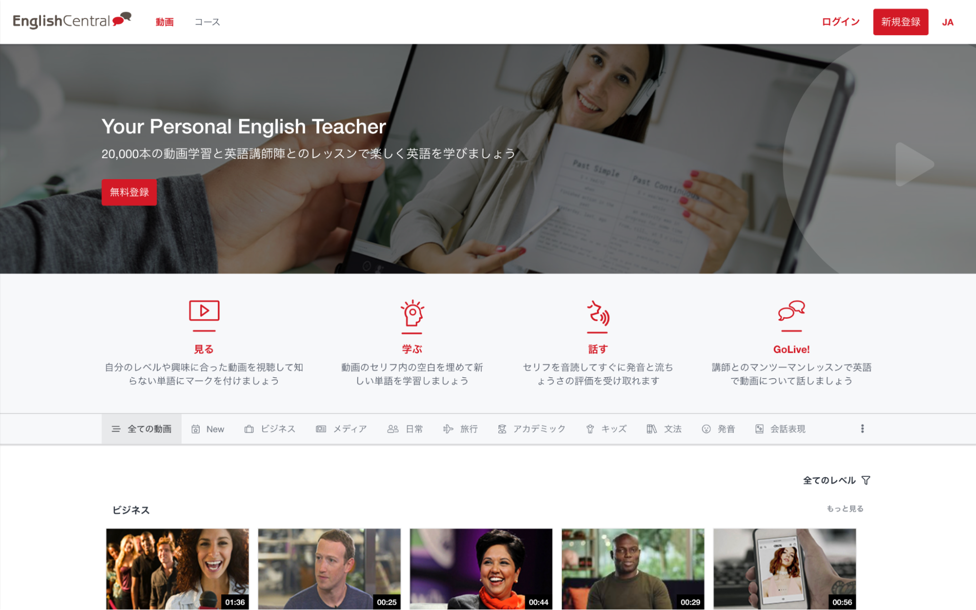 EnglishCentralは、20,000本以上の動画教材で生きた英語が身につけられる英語学習プラットフォームです。