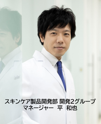 当社では、健康で美しい素肌を目指し、徹底したお客様起点の考え方から、基礎研究が欠かせないという信念をもち、様々な技術をいち早く製品へ応用する研究を続けています。ブルーミオにおいても、「効果」や「成分」にも関心が高い新エイジング世代のお客様へ、中身にこだわりぬき、自分らしく年齢を重ねたいという前向きな想いにお応えしたく、全社一丸となって製品化を実現しました。