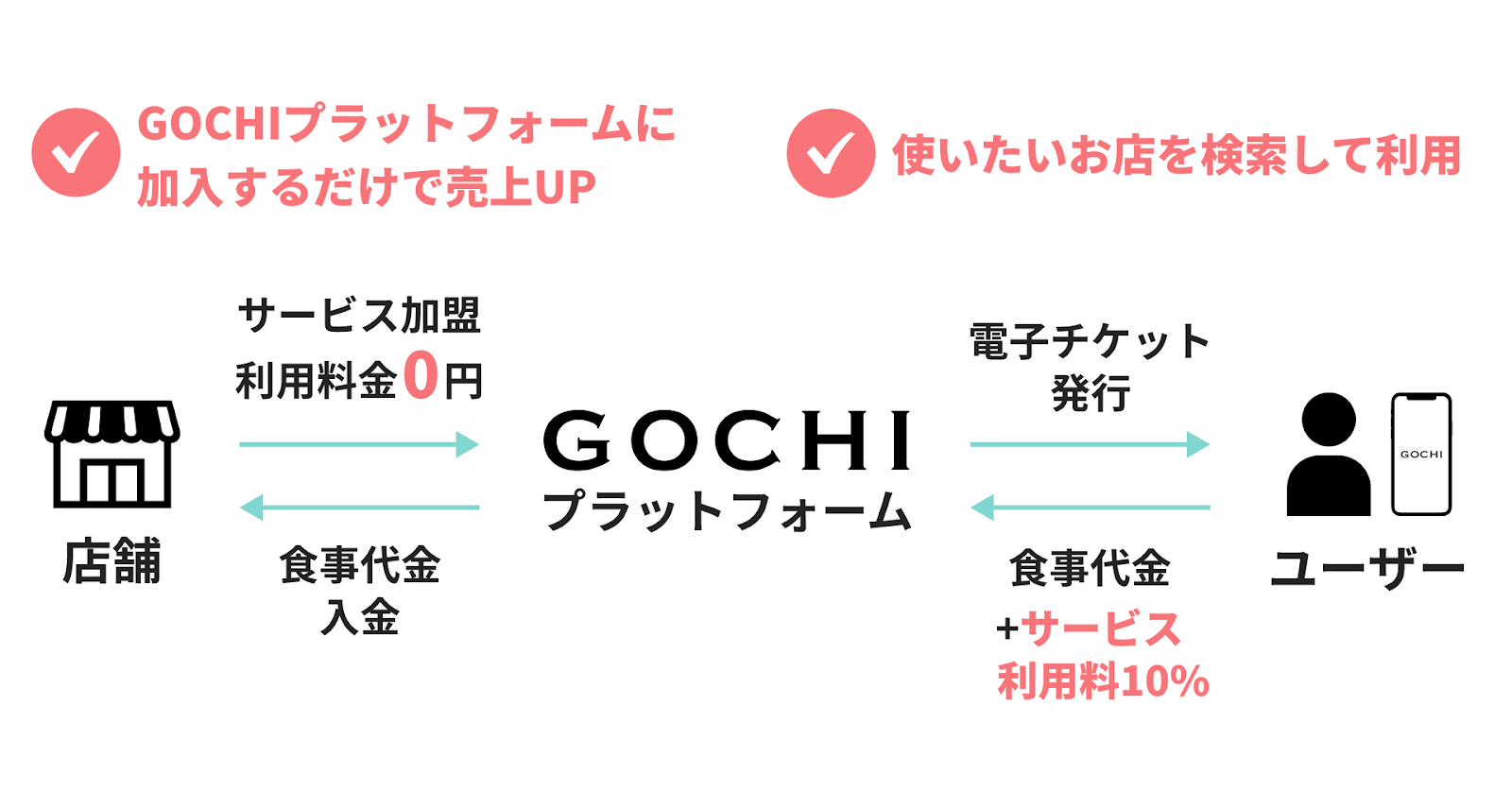 「ごちめし」のサービスを開始した2019年10月以来、当社の「GOCHIプラットフォーム」は、「さきめし」「びずめし」「GOCHI for ビジネス」のデジタルチケットを発行し、また「こどもごちめし」にこのプラットフォームを提供しています。