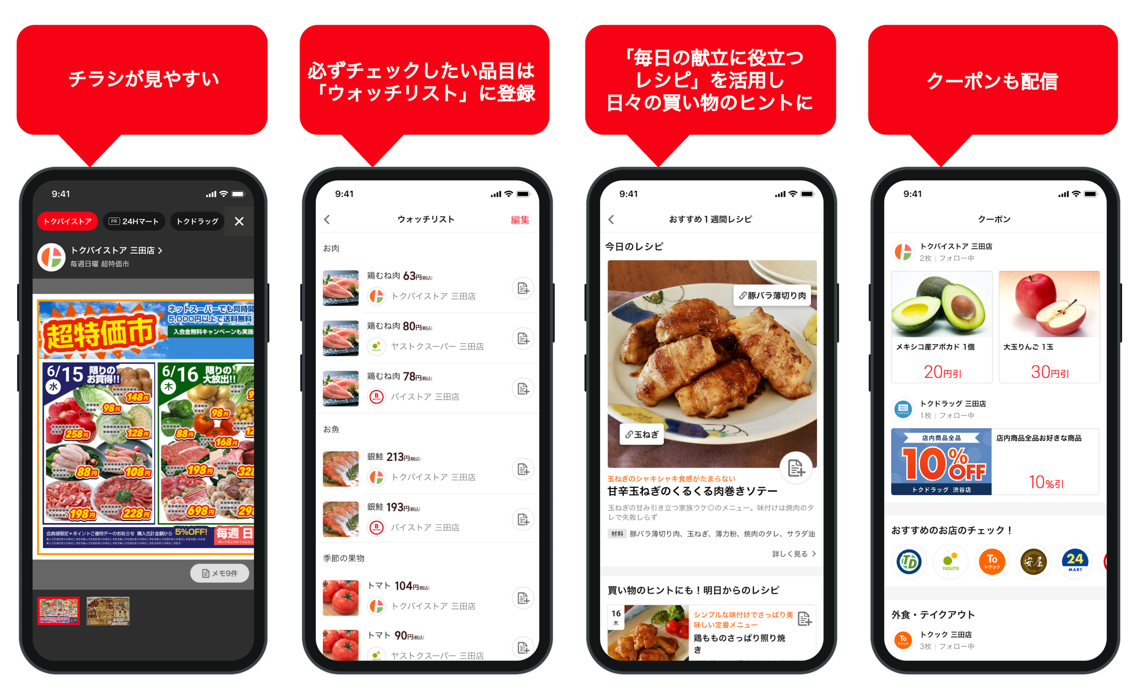 「トクバイ」は、毎日のくらしに欠かせない買い物を「もっと」かしこく、「もっと」たのしいものにできるよう、これからも様々なコンテンツを展開してまいります。