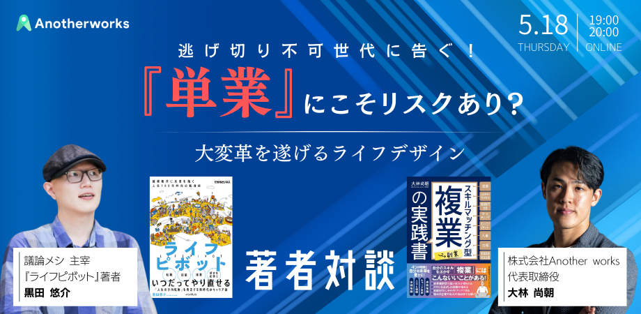あたらしいキャリア論『ライフピボット』著者である黒田 悠介氏とともにウェビナーを開催いたします。大きく変わっていく社会に漠然とした不安を抱えている方や、現状のキャリアや自分の将来像に満足していない方にはオススメのウェビナーです。