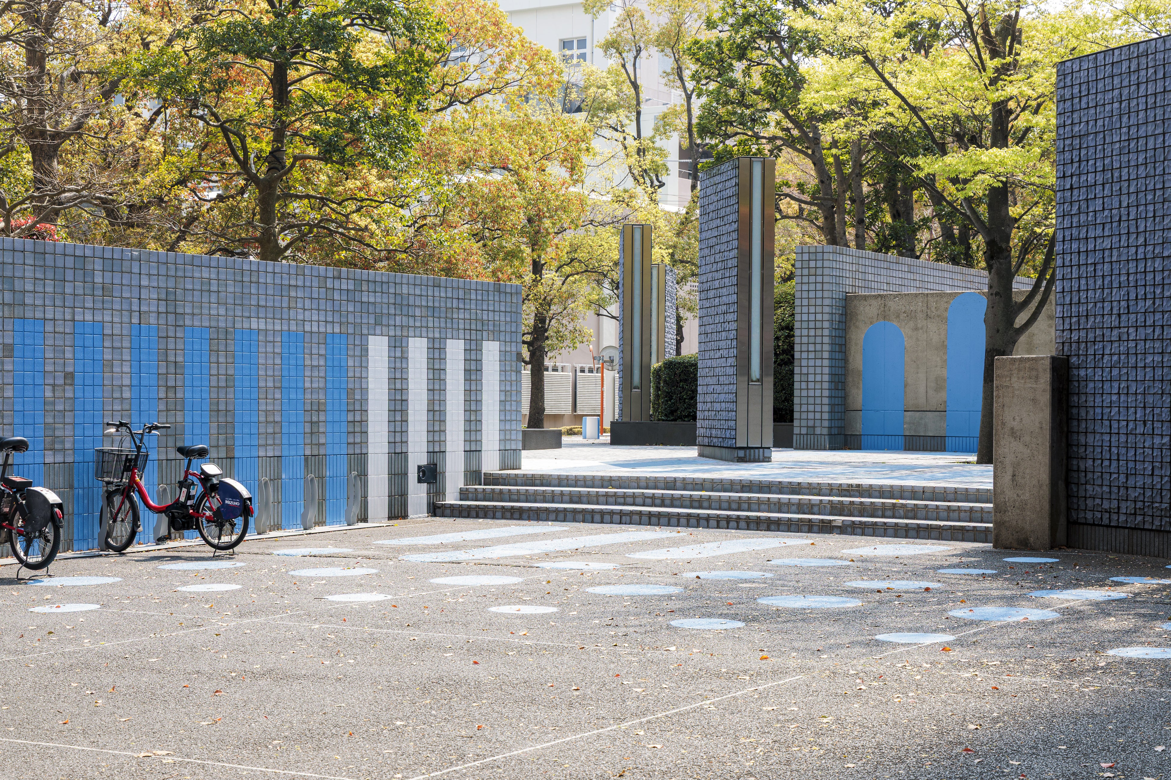周辺エリアが「ドラム缶発祥の地」である歴史的文脈を反映し、ドラム缶をモチーフにした円柱形のストリートファニチャーを設置。さらに、水面の波紋や泡をイメージした床面グラフィックにより、「休憩する」「遊ぶ」「待合わせする」「通り抜ける」といった行動を自然に促すデザインを施しました。物理的な改修を最小限に抑えつつ、視覚的なデザインの力で、形式的な公開空地を「滞在できる空間」へと昇華させています。