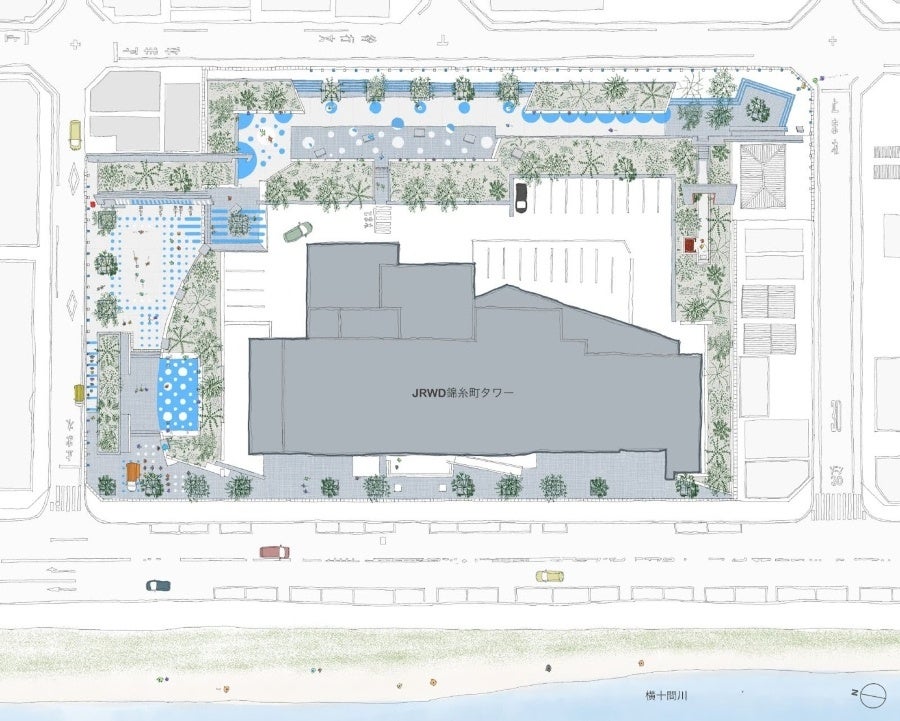 オフィスビルと街と川、オンとオフをつなぐ余白の創出