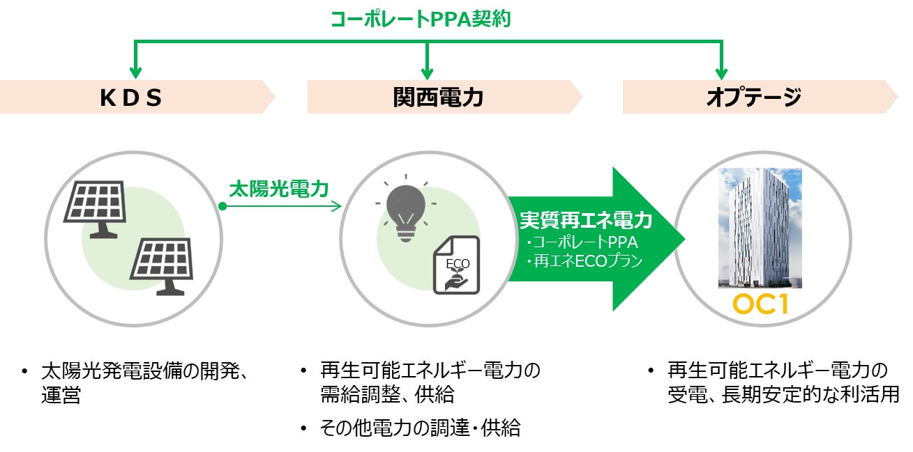 株式会社オプテージ(以下、オプテージ)は、関西電力株式会社(以下、関西電力)、およびKDS太陽光合同会社(以下、KDS)とコーポレートPPA※1(以下、本CPPA)を締結しました。これにより2026年1月29日(木)から運用開始する「オプテージ曽根崎データセンター(OC1)」に、KDSの太陽光発電所で発電された再生可能エネルギー由来の電力が、関西電力を通じて供給されます。