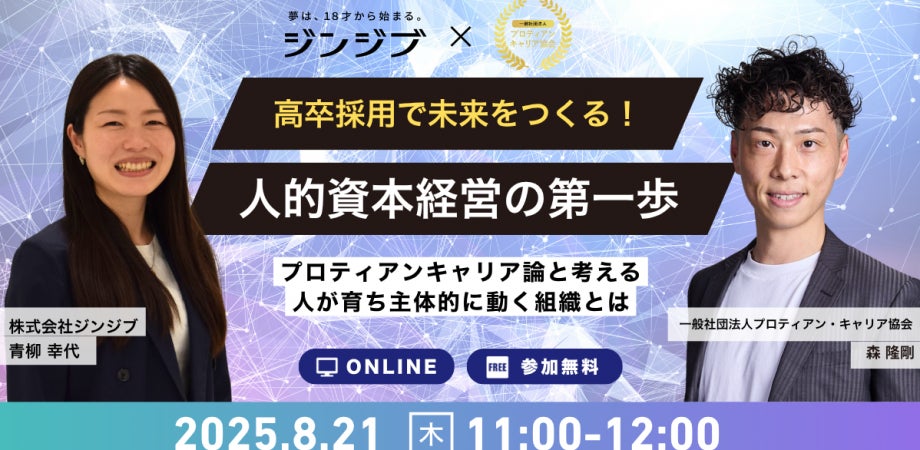 【株式会社ジンジブ共催】プロティアン・キャリア×人的資本経営の視点から考える、高卒採用・定着戦略セミナーを開催<8月21日(木)>