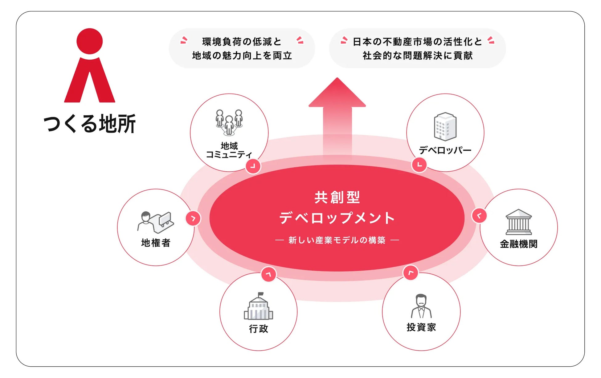 つくる地所は、「すべては、土地をつくるから始まる」という想いのもと、不動産の新たな価値と可能性を追求し続ける企業です。その歩みは昭和53年、埼玉県熊谷にて木造住宅の設計・施工から始まりました。以来、時代の変化の波を捉え、バブル期や平成初期を乗り越える中で着実に実績を重ね、平成30年に東京支店を設立し東京都内での不動産開発事業を開始。「現在とこれから」を見据えた事業を展開しています。