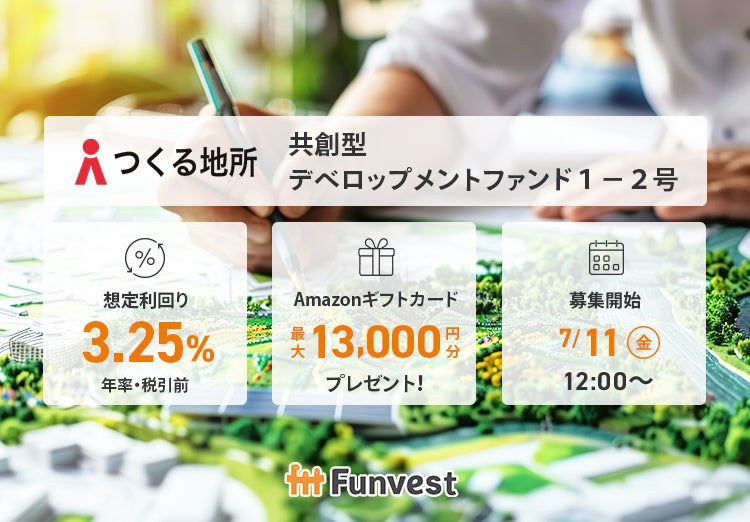 貸付型クラウドファンディング「Funvest」7/11より新ファンド「つくる地所 共創型デベロップメントファンド1-2号」の募集開始