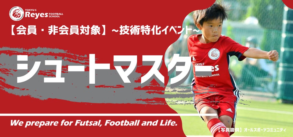 東急Sレイエス フットボールスクール 横浜金沢では、12月23日(金)に小学2~5年生を対象とした技術特化イベント『シュートマスター』を開催いたします。シュートで必要なキックの技術から始まり、相手がいる状況でもシュートが打てるようなトレーニングをしていきますので、ぜひご参加ください。