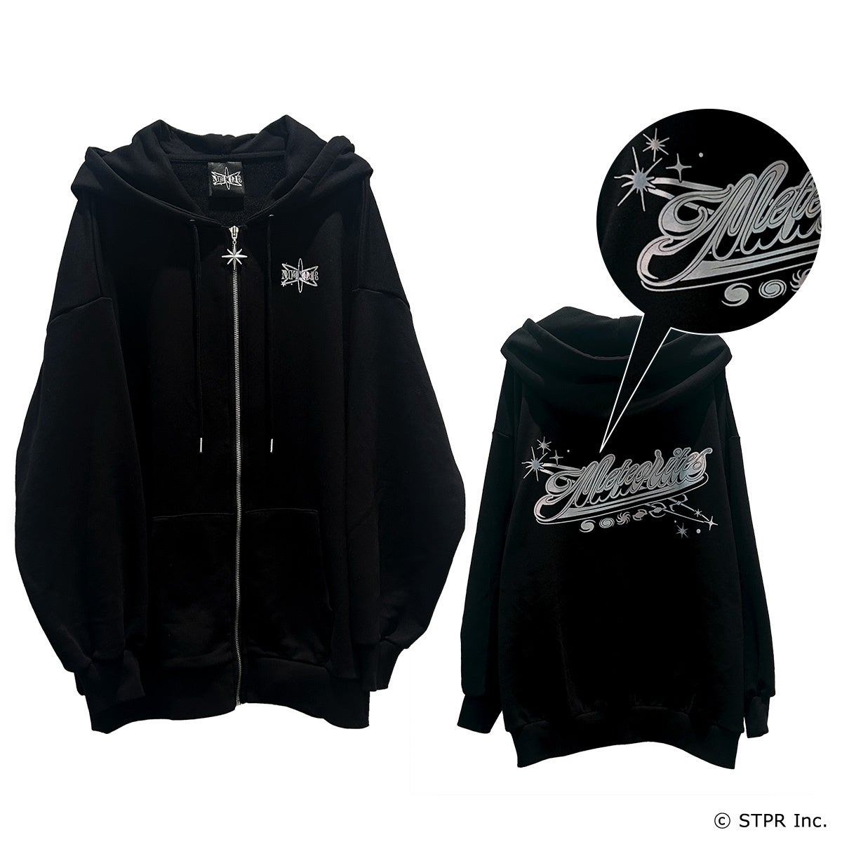 左胸と背中のロゴはオーロラ箔プリントでプリントされており、星のファスナーチャームがついた“めておら - Meteorites -”感が満載の仕上がりとなっております。