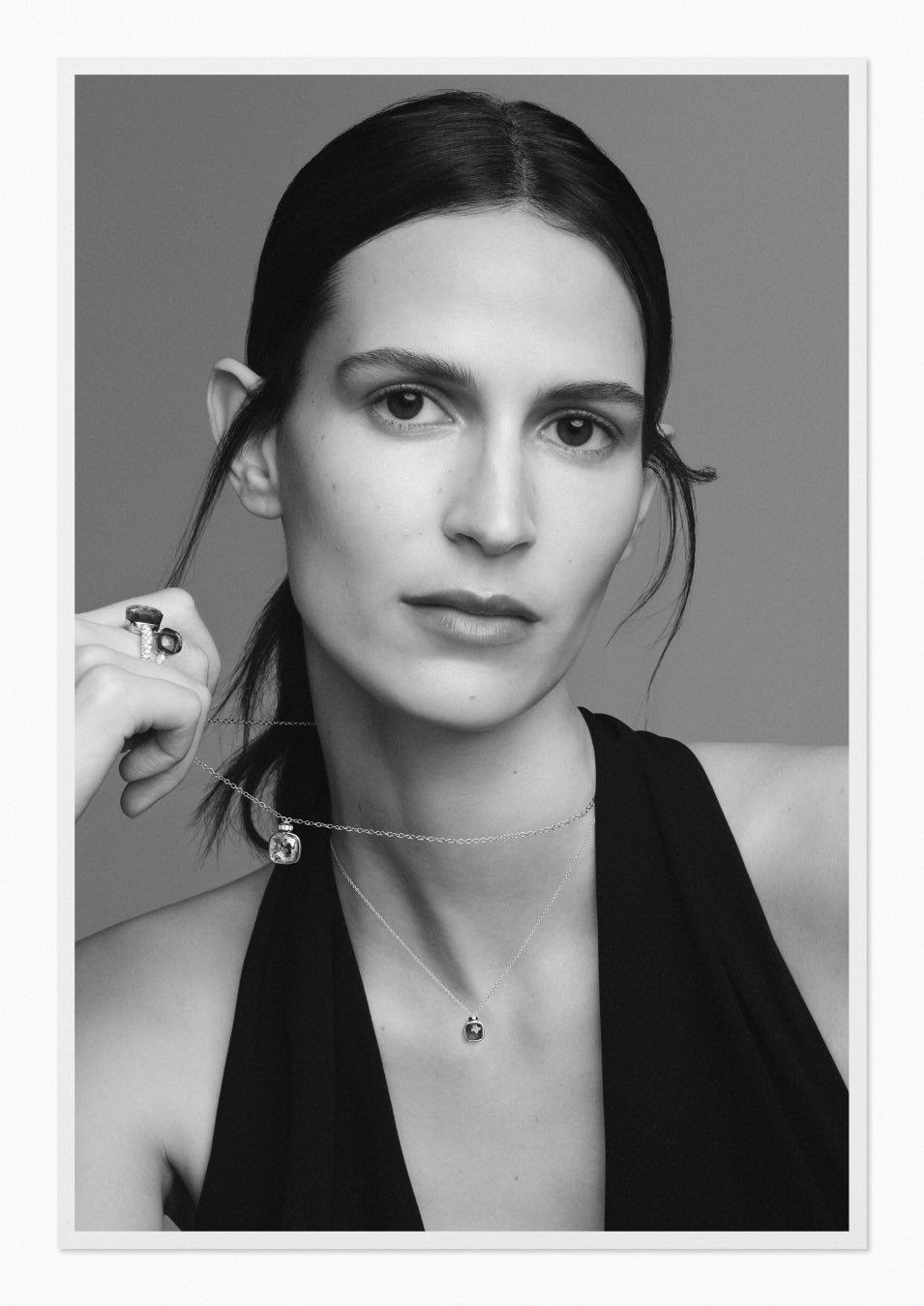 「ヌード」は単なるジュエリーを超えた存在であり、さまざまな芸術的フォームが交わるミニサイズの マスターピースです。デザインにおけるクリエイターの独創性、職人技術、特徴的な57のファセットカットにおけるカッティングの精密さ、ジェムストーン選定におけるジェムマスターの感性、さらに女性が「ヌード」を自由に楽しめる無限のスタイルが融合しています。