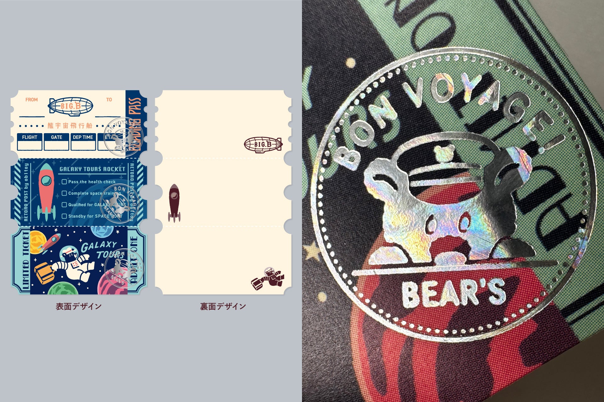 オビワンのレトロ可愛い絵柄を、ROKKAKUならではの箔押し加工技術が美しく彩ります。