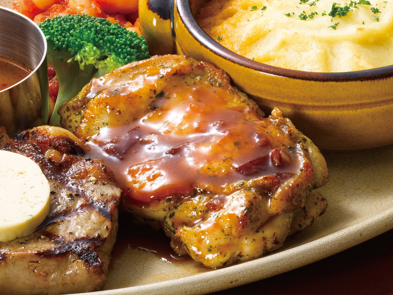 アンガスサーロインステーキ&チキングリルwithコテージパイ