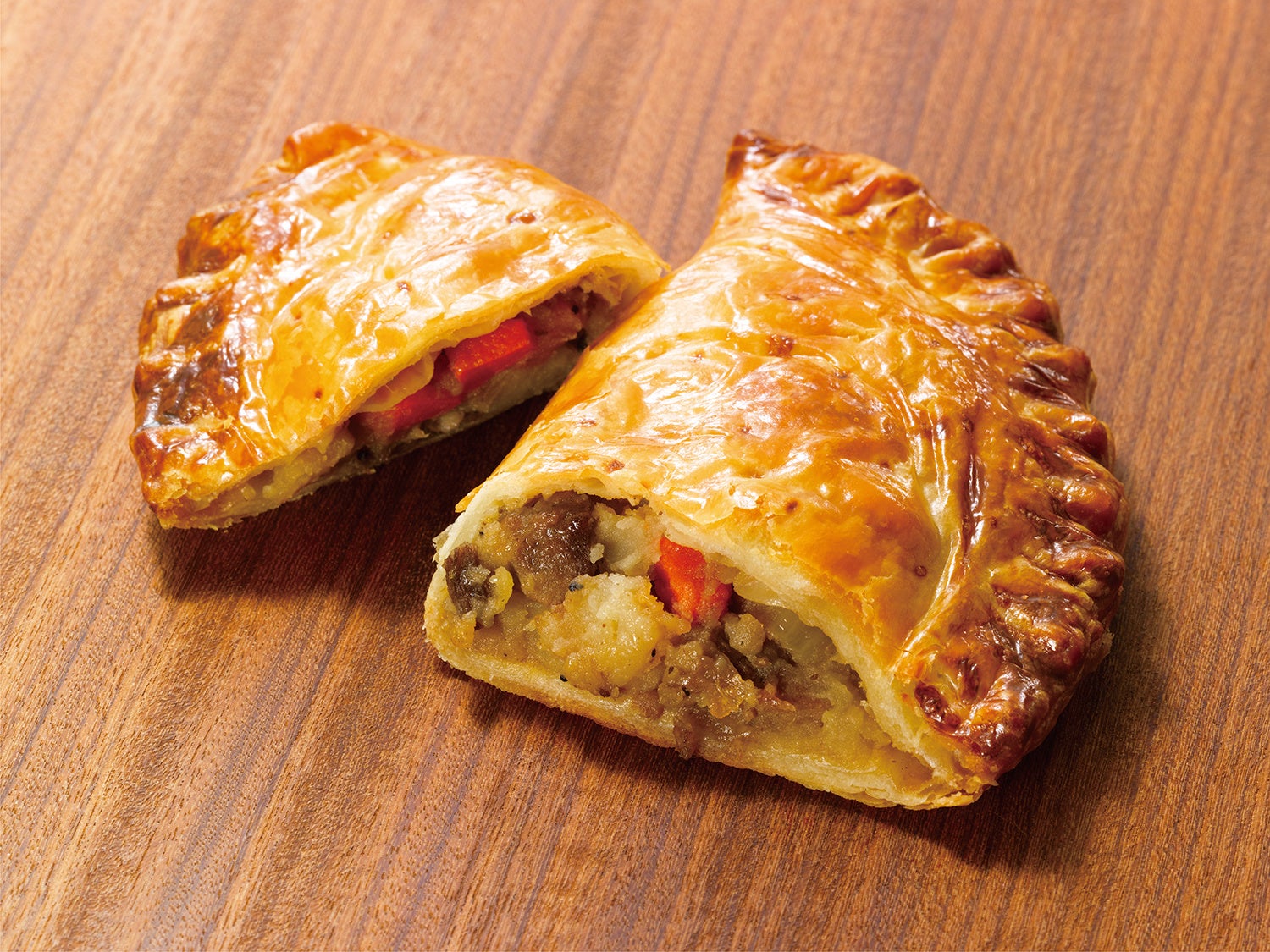 刻んだ牛肉、ポテト、玉ねぎ、ルタバガ(カブに似た根菜)などをパイ生地に包み込んだ伝統的な料理です。