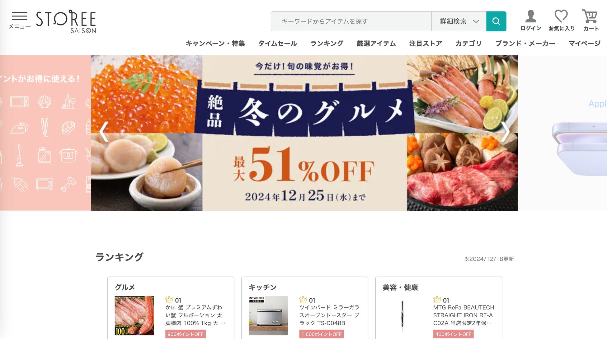 株式会社クレディセゾンは、同社の他サービスサイトで「Advantage Search」の機能面の適合性、導入支援の質、柔軟なサポート対応、そしてそれらによる顧客満足度の向上をきっかけに、永久不滅ポイント・UCポイントが使える総合通販サイト「STOREE SAISON」への導入を決定しました。