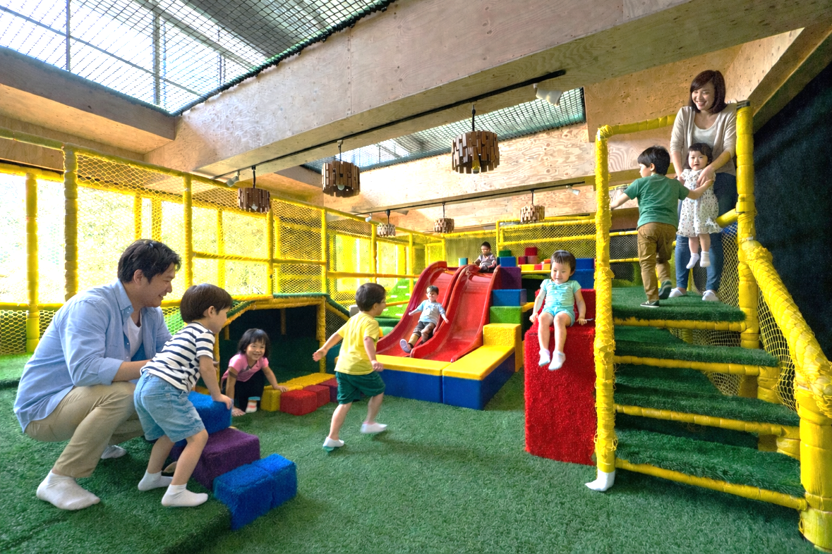 遊び: 天候を問わず楽しめる広々とした屋内キッズパーク