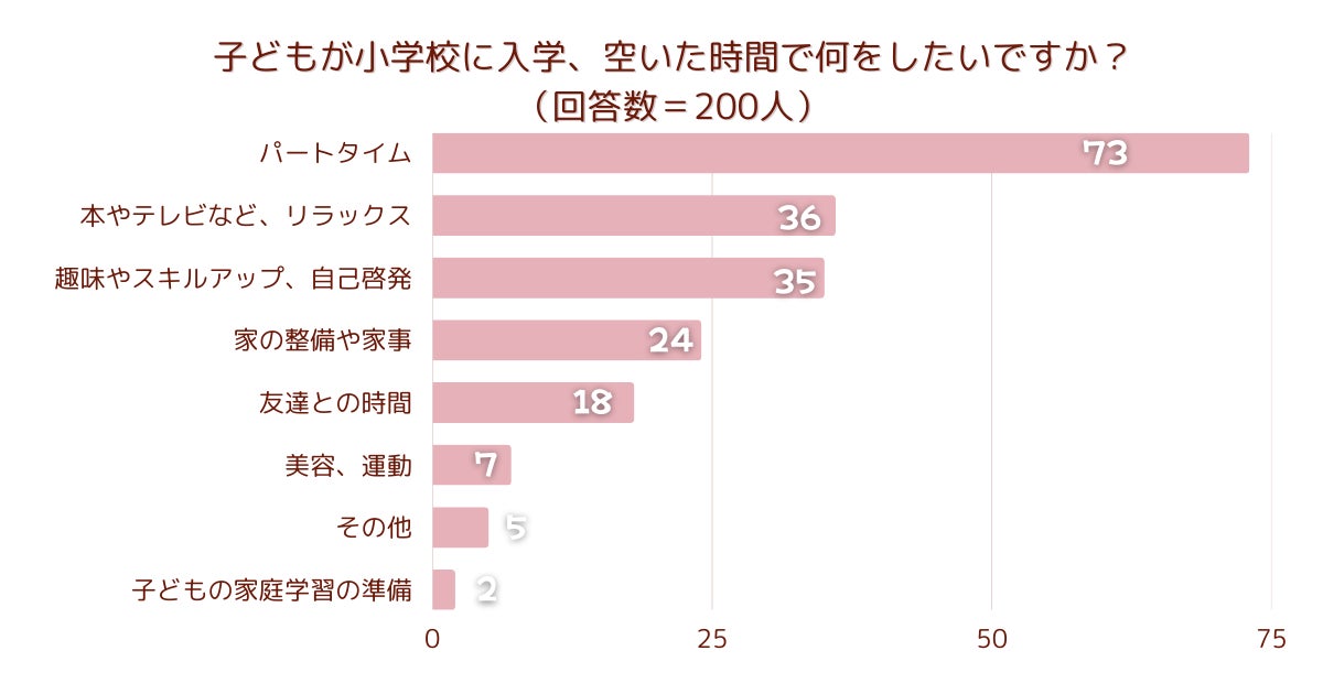 「子どもが小学校に入学、空いた時間で何をしたいですか?」とアンケート調査した結果、1位は『パートタイム』でした。