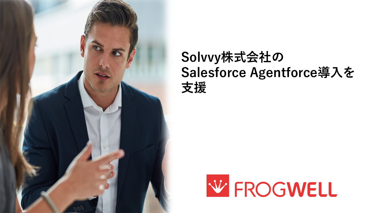 フロッグウェル株式会社(本社:東京都港区、代表取締役:小谷直也、以下「フロッグウェル」)は、ストック型ビジネス創出支援を手がけるSolvvy株式会社(代表取締役社長:安達慶高、以下「Solvvy」)に対し、SalesforceのAIエージェントプラットフォーム「Agentforce」の導入支援を実施しました。本プロジェクトでは、Einstein Conversation Insightsの活用と、会話サマリーの自動化による業務効率の向上を図っています。