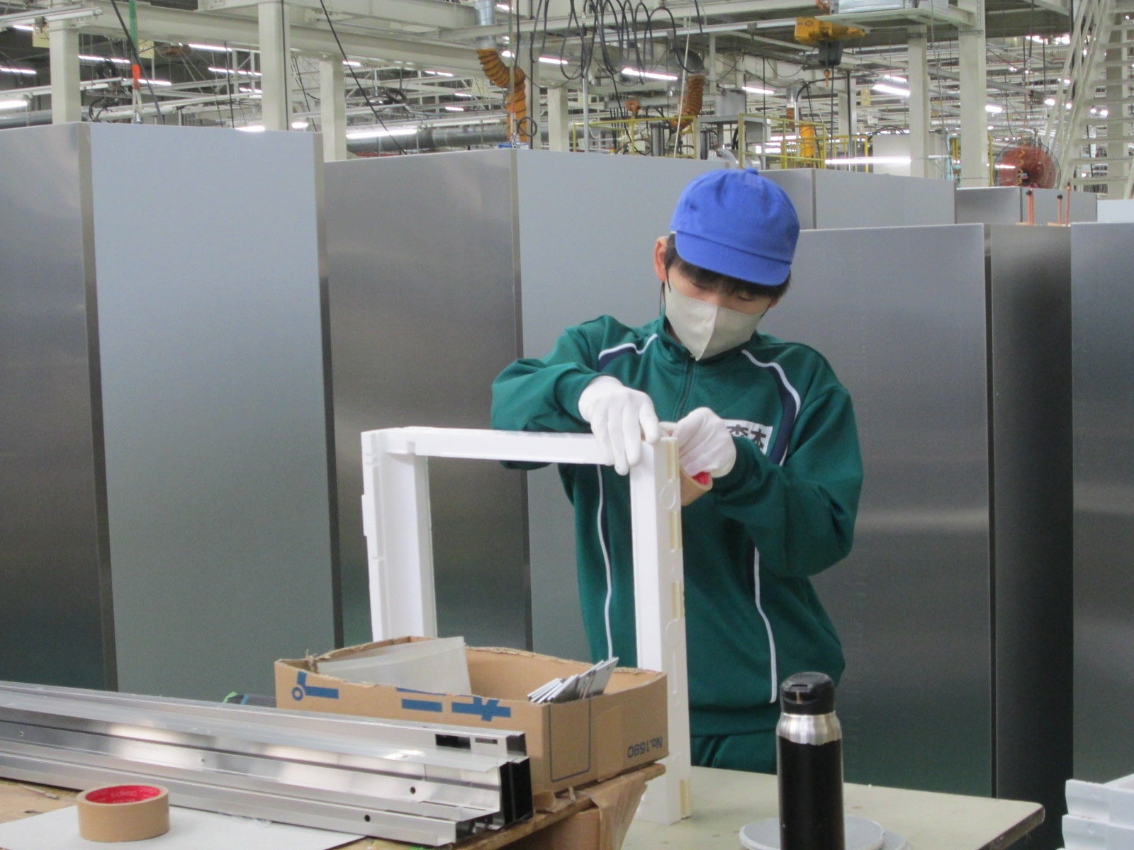 中学2年生は心身の成長が著しく、自身の将来や社会との関わりに関心を持つ重要な時期です。今回の職場体験では、生徒たちが実際の製造現場で業務用冷凍冷蔵庫の部品組立などの作業を体験しました。生徒たちは、社員と共に作業に取り組む中で、働くことの意義や責任を感じたようです。