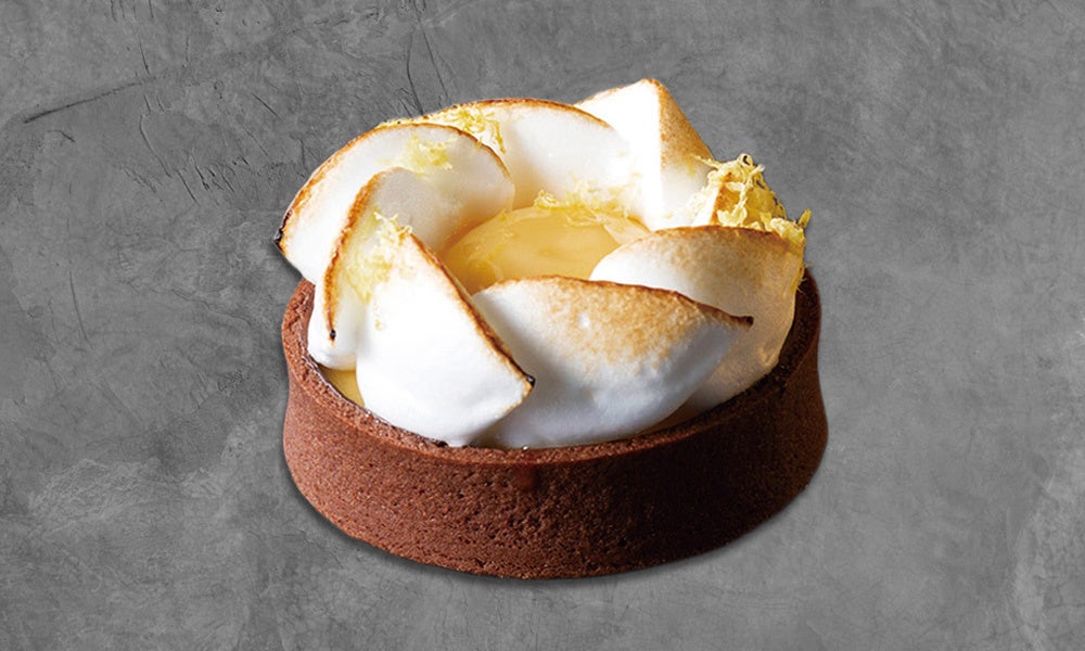 サクサクと香ばしいチョコレートタルトに絞ったのは国産レモンの果汁と皮を贅沢に使った、ミルキーでありながらキリッと酸味が引き立つレモンクリーム。一口頬張れば、レモン本来の華やかな香りと爽やかさがふわっと広がります。タルトの底には、果肉感を残したレモンのコンフィチュールを忍ばせ、トップにはほんのり甘いレモン風味のメレンゲを。口に運ぶたびに、初夏の光をまとったような清々しさを感じる、軽やかでリッチな味わいです。