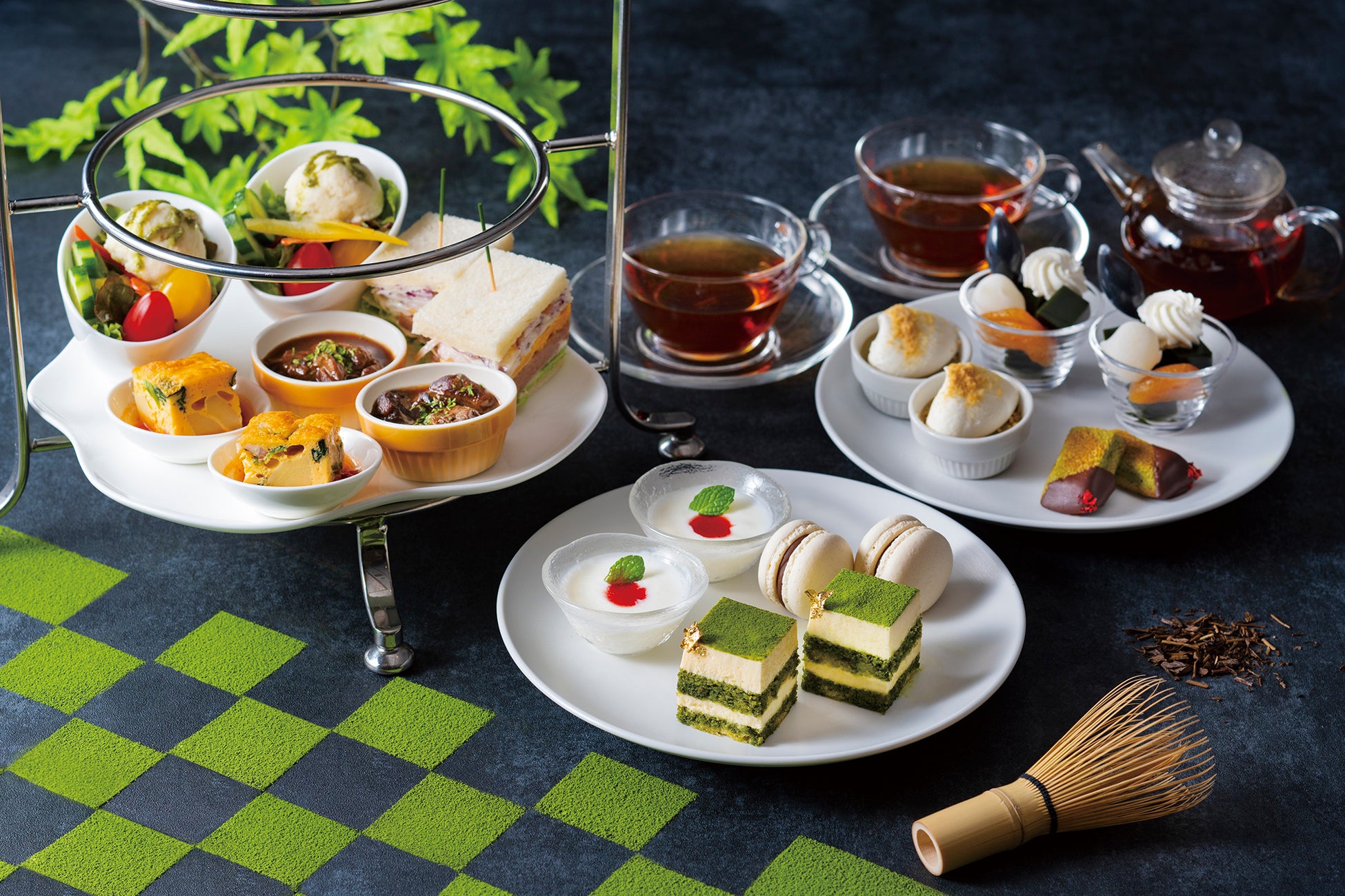 ■45階からの東京の絶景とともに楽しめる、「抹茶×ほうじ茶アフタヌーンティー」も開催