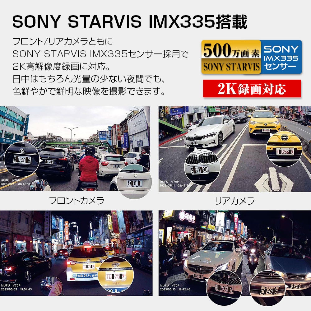 sony starvis IMX335のイメージセンサー搭載し、日中でも夜間でも2Kの高画質を提供!ヘルメット装着の撮影角度を考慮したリアカメラ水平-10°の拘りデザイン。