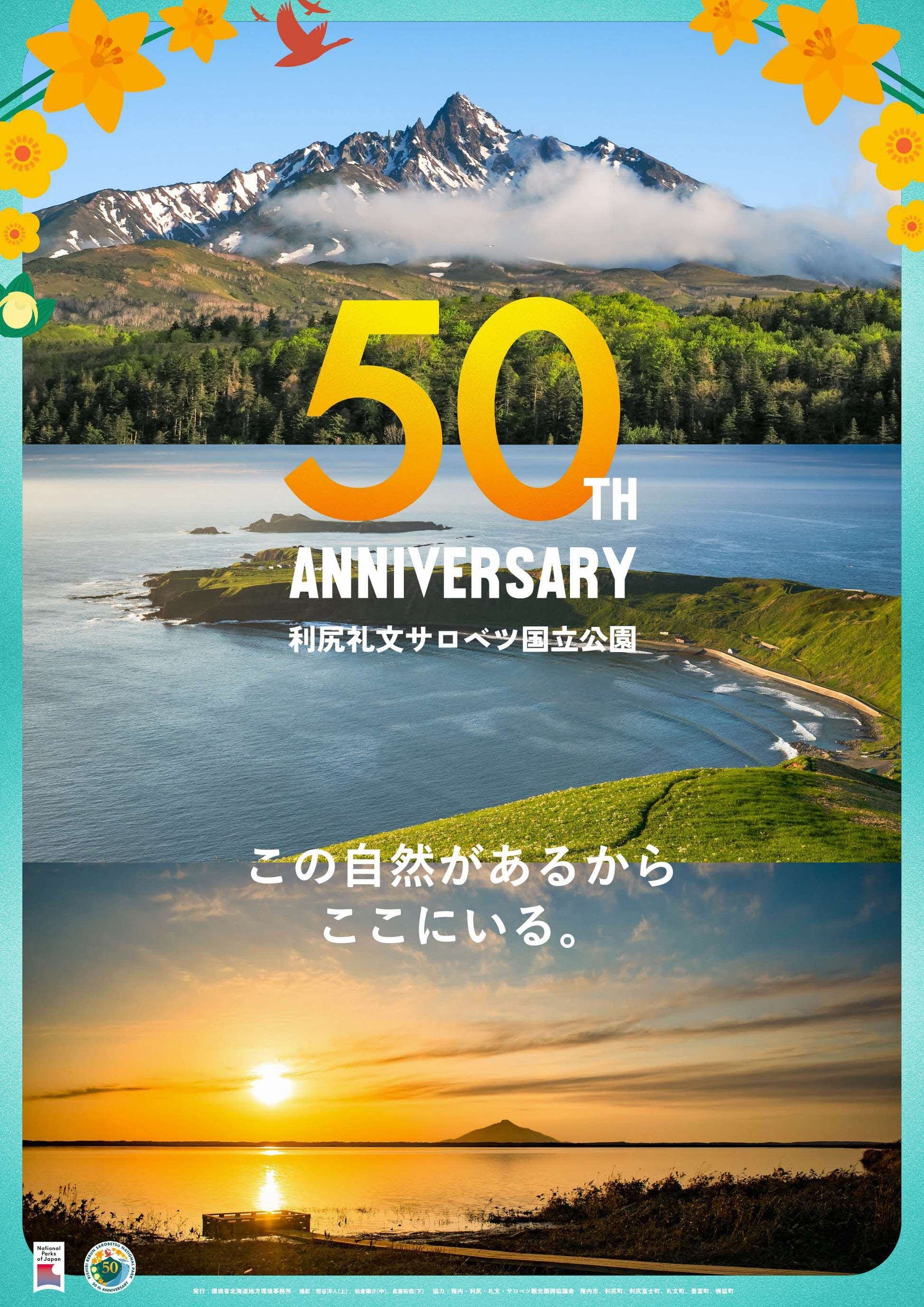 利尻島と礼文島の約半分と稚内市から豊富町・幌延町へ続く海岸砂丘林及びサロベツ原野にかかる日本最北の国立公園が指定50周年を迎えることを記念して、パネル展を開催します。公園の魅力が詰まったパネルや動画の放映、また、50周年限定缶バッチの配布もありますので、国立公園の魅力を見(観)に来てください!