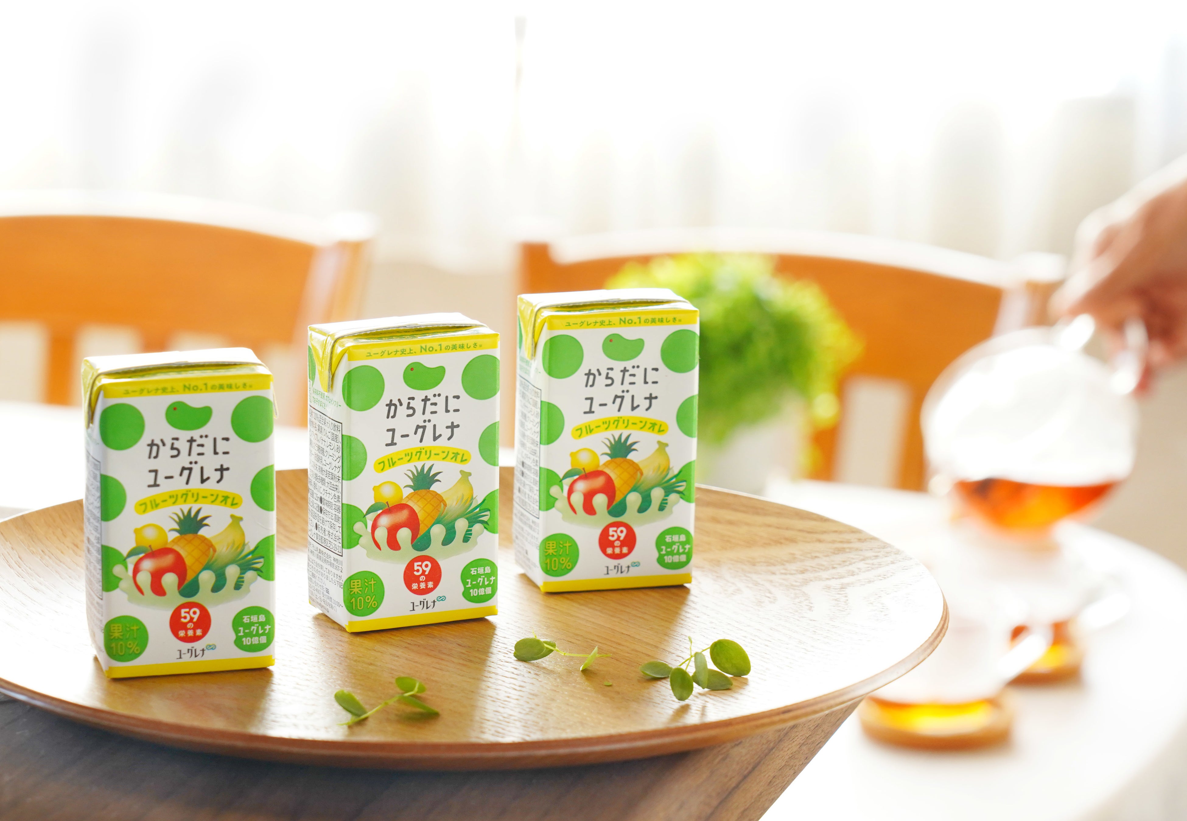 「からだにユーグレナ フルーツグリーンオレ」は59種類の栄養素をバランスよく含む「石垣島ユーグレナ」を10億個配合した栄養たっぷりのドリンク。