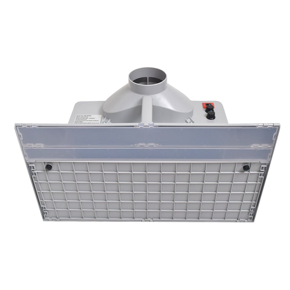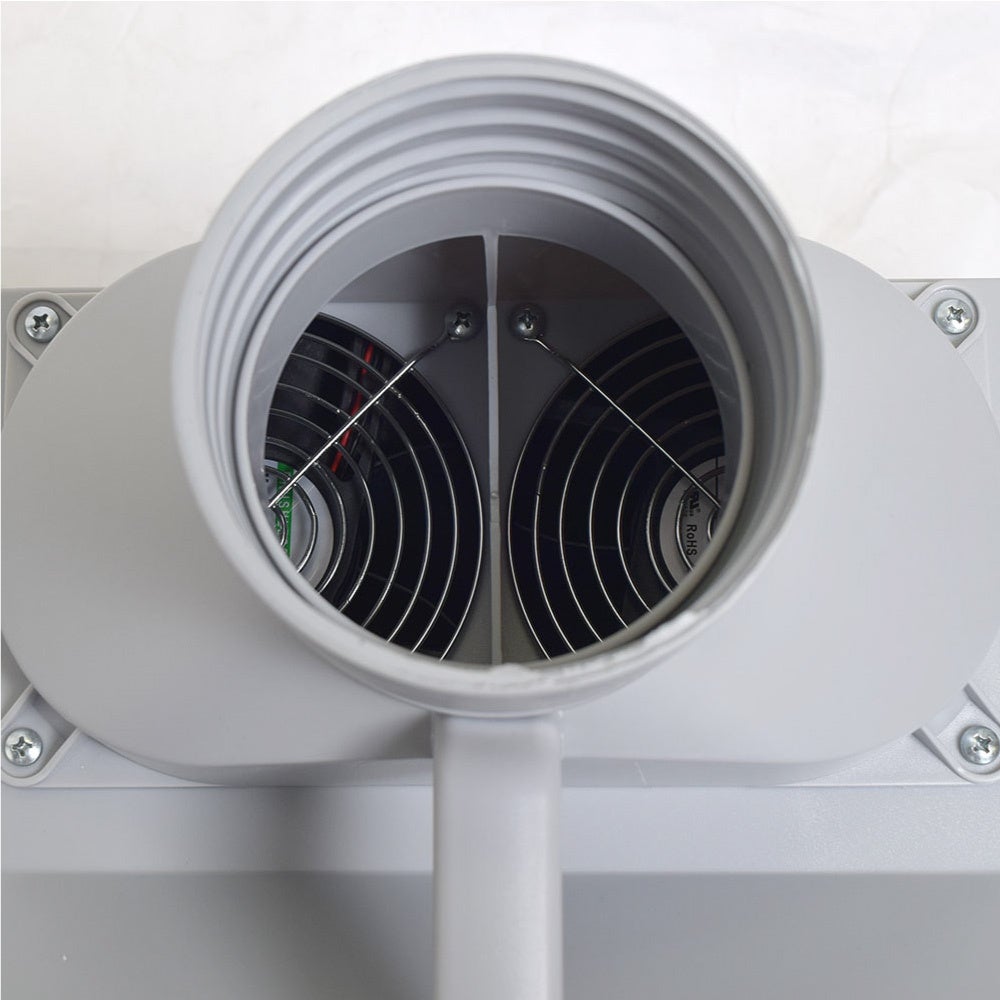 吸引排気機能を搭載し、電源を入れファンスイッチのダイヤルを回すと2個のファンが作動し、本体ダクトを通して屋外へ強制的に排気が可能です。