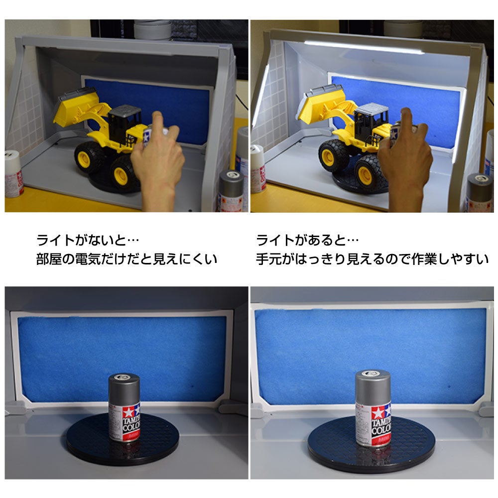 作業スペースのサイズは幅545×高さ350×奥行460mm。大型模型の塗装もゆったりと行う事ができます。