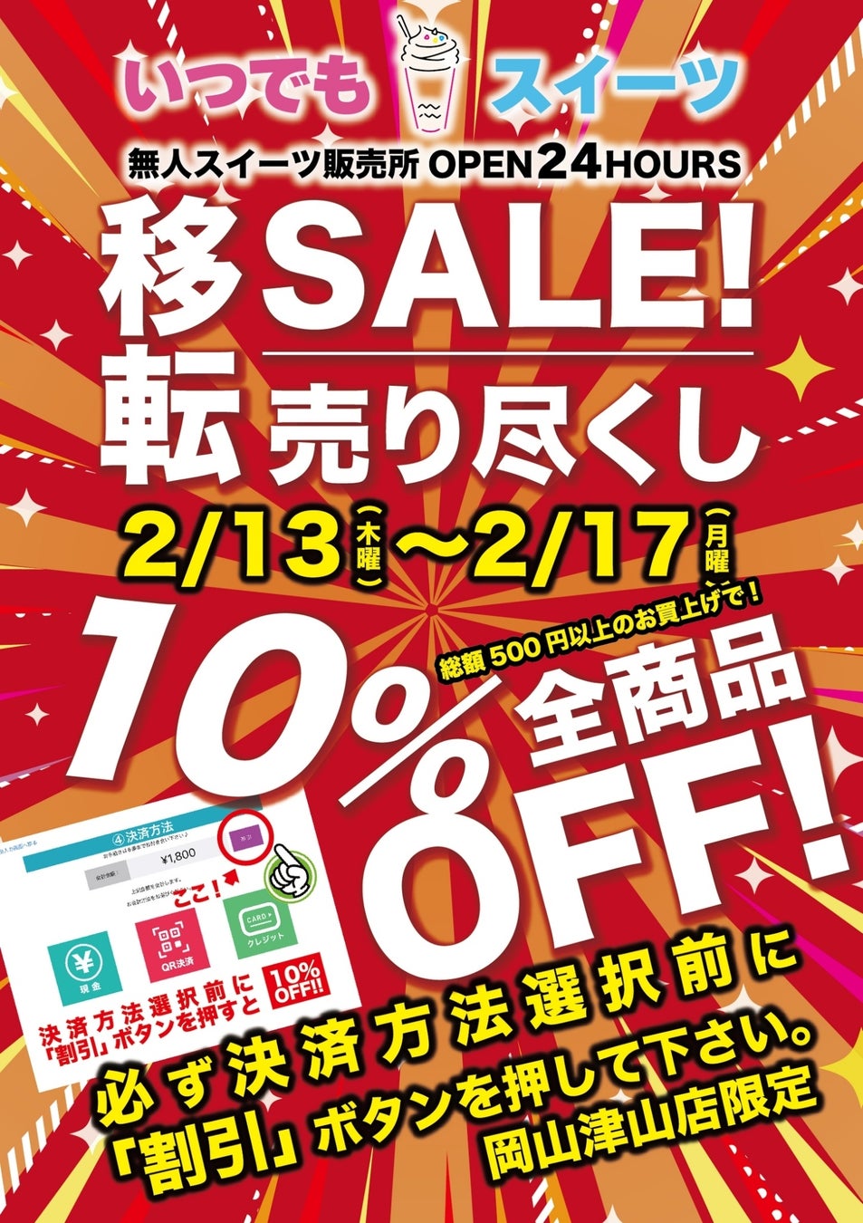 「いつでもスイーツ岡山津山店」移転売り尽くしセール実施!!