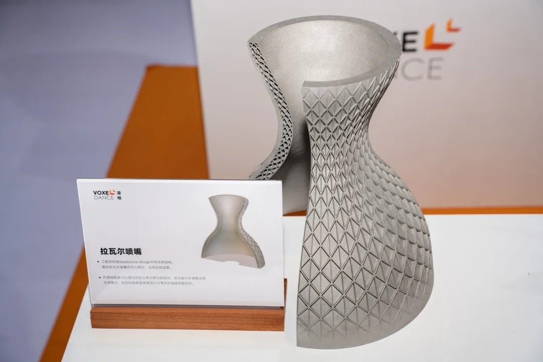 VoxelDance Design のラティス構造機能を使用してラバルノズルの中空部分を埋め、重量を軽減しました。