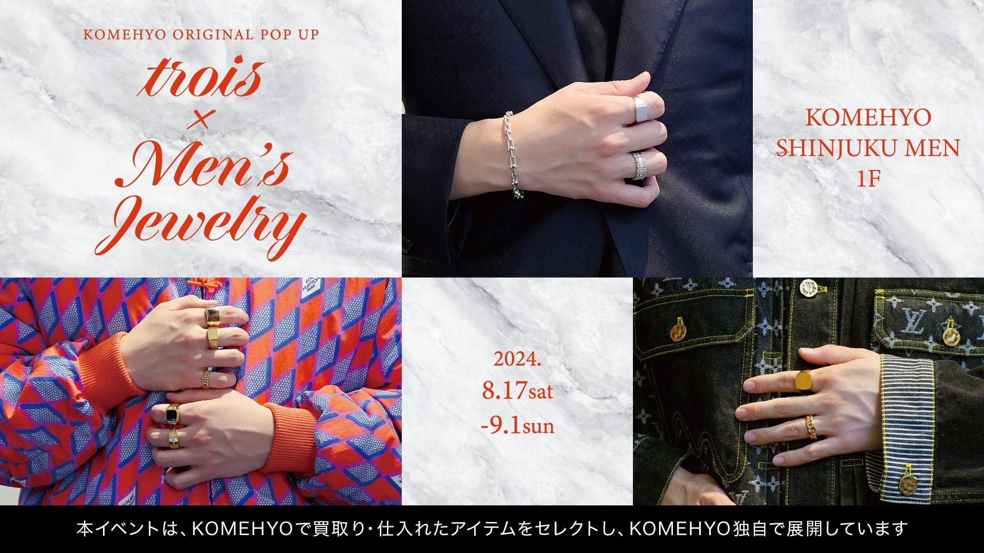 株式会社コメ兵(本社:愛知県名古屋市中区、代表取締役社長:石原卓児、以下「KOMEHYO」)が運営する、KOMEHYO SHINJUKU MENでは、8月17日(土)から9月1日(日)の期間限定で高品質なメンズジュエリーとルイ・ヴィトンのアパレルの組み合わせを展示&販売するPOPUP企画を開催いたします。