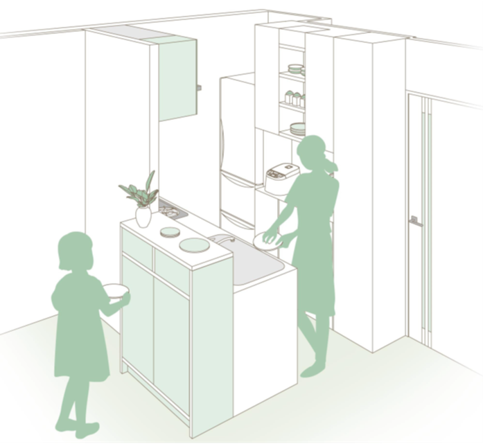 これらの調査結果から、コロナ禍で料理頻度が上がり、その分キッチンも汚れ「名もなき家事」が増えたことから『清掃性が高いこと』、在宅勤務により夫の家事・育児への参加もこれまでより見られることから、『誰でも使いやすいこと』の2点に着目。家族みんな料理が好きになり、みんなでシェアしたくなるオリジナルキッチンの開発を行いました。