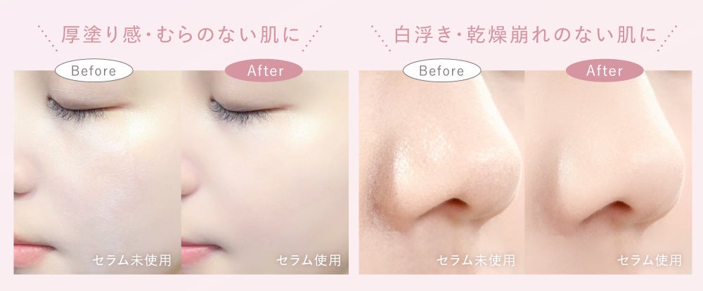 “メイク前セラム”と合わせて使うことで、厚塗り感のない均一な透明感白肌(※4)を作ることが出来ます。