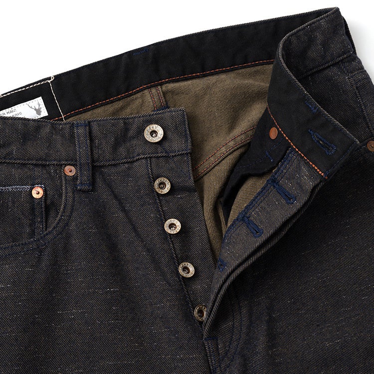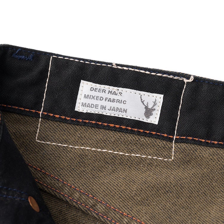 本商品に使用している素材は、オイカワデニムが「廃材再利用プロジェクト」の一環として、本来廃材となる「シカの毛」を活用して東北大学との共同研究により開発した新素材。単なる廃材の再利用ではなく、天然の温度調整機能を活かしつつシルエット&穿き心地にもこだわり抜いた、オリジナリティの高い一品です。