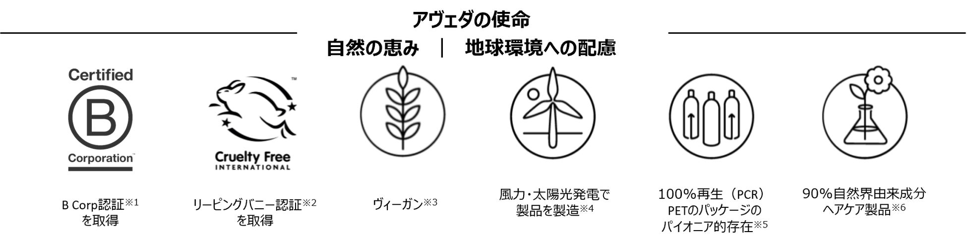 ※2 リーピングバニー認証とは、クルエルティフリー・インターナショナルによって、製品開発~製造工程で動物実験を行っていないブランドに付与される、国際的に認められている最高水準の認証です。 ※3 動物実験も行わず、動物由来成分も使いません。 ※4 製品の製造には、(米国の)再生可能エネルギークレジットやカーボンオフセットを通じてアヴェダの太陽電池や風力エネルギーによる電力が供給されています。更に、工場施設において、2023年末までに、ULスキームによるごみ廃棄場のシルバーゼロ ウェイスト認証を取得できるよう取り組んでいます。※5 85%以上のスキンケアおよびヘアスタイリングのPETパッケージとジャー容器は再生(PCR)PETを100%使用しています。 またアヴェダは美容業界において、100%再生(PCR)PETパッケージを採用した初めての化粧品会社です。