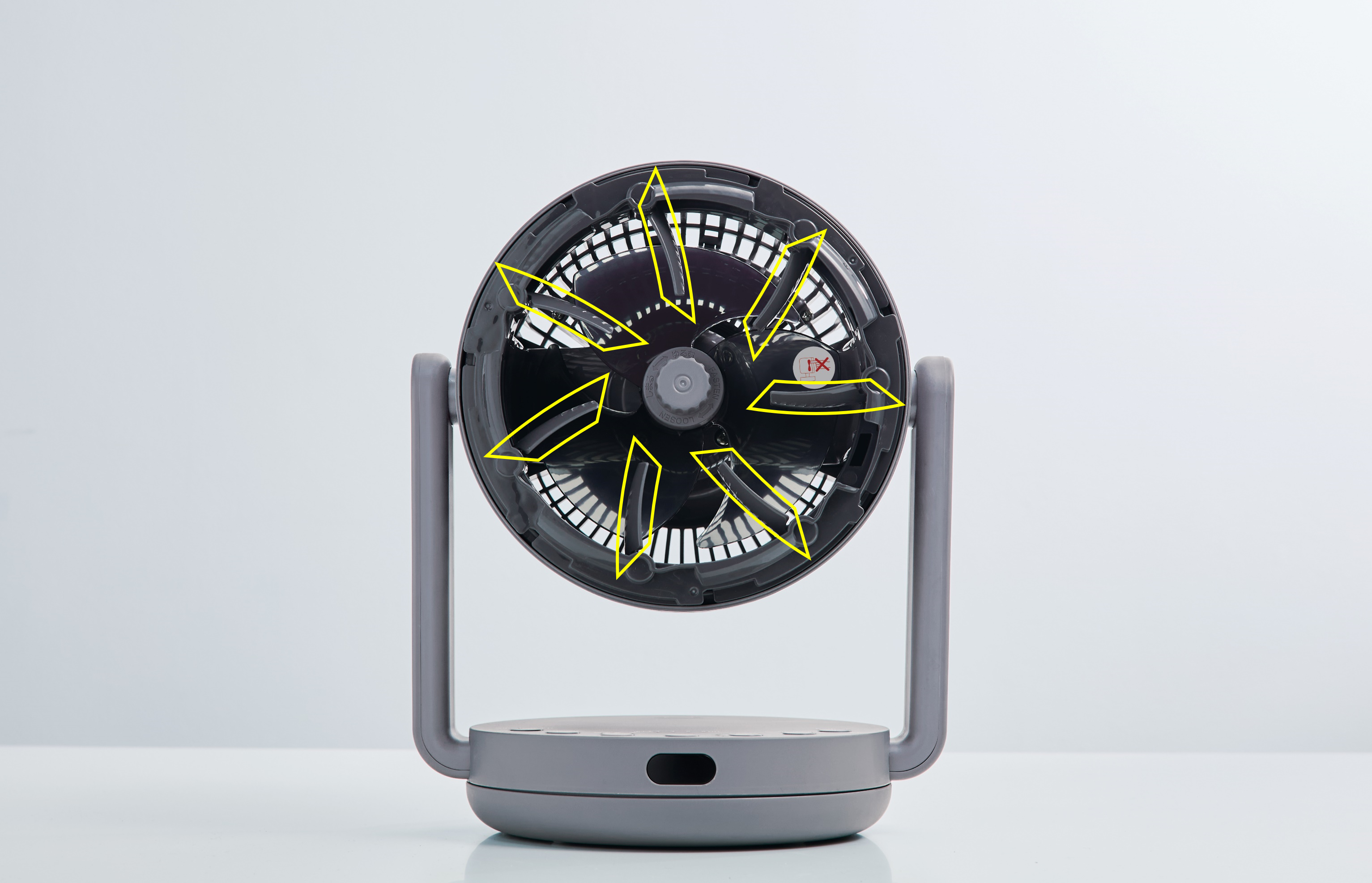 ルーバーが出ている時は、風が整流されるので、強くまっすぐ進むサーキュレーターの風を生み出します。ルーバーが出ていない時は、やわらかく心地いい扇風機のような風を生み出します。