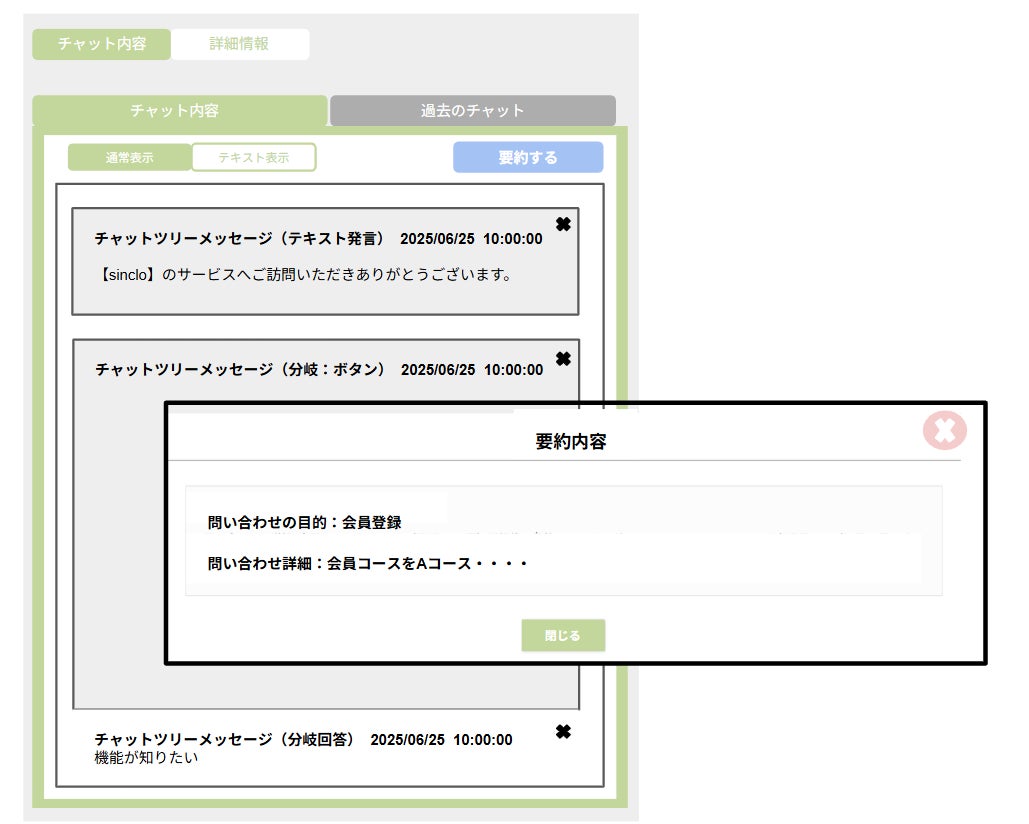 ・チャットログをAIが自動要約し、重要なやりとりを即座に把握可能