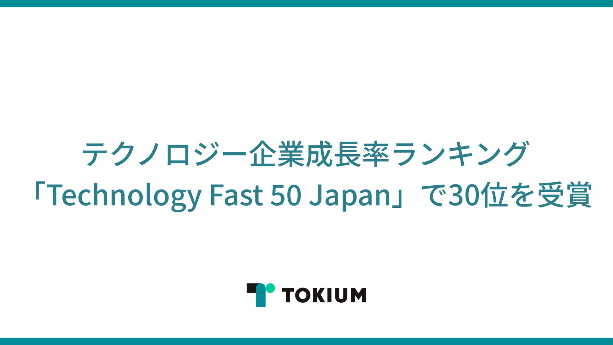 TOKIUM(トキウム)、テクノロジー企業成長率ランキング「Technology Fast 50 Japan」で3年連続の受賞