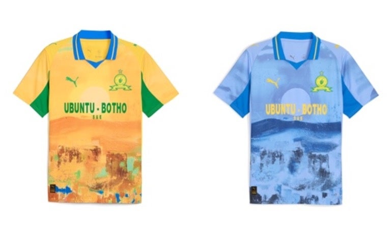 南アフリカ・ツワネの夕暮れをイメージ。クラブ特有の“シュシャイン&ピアノ”スタイルを、温かみのあるイエローを基調にブルー、グリーン、ホワイトで描写。GKキットはパープルにマウンテンブルーとイエローのアクセント。