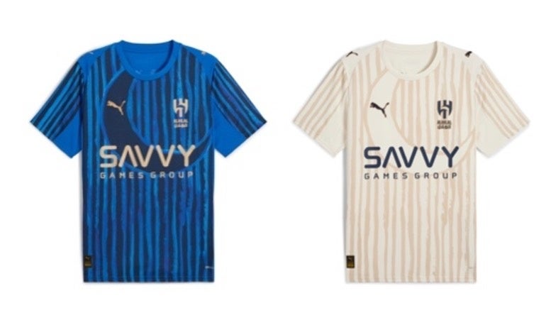 アラビア語で“新月”を意味するクラブ名にちなみ、トーナルブルーで月を描写。静かなる自信と夢追う姿勢を表現。GKキットはアルペンスノーをベースにブルーとネイビーの配色。