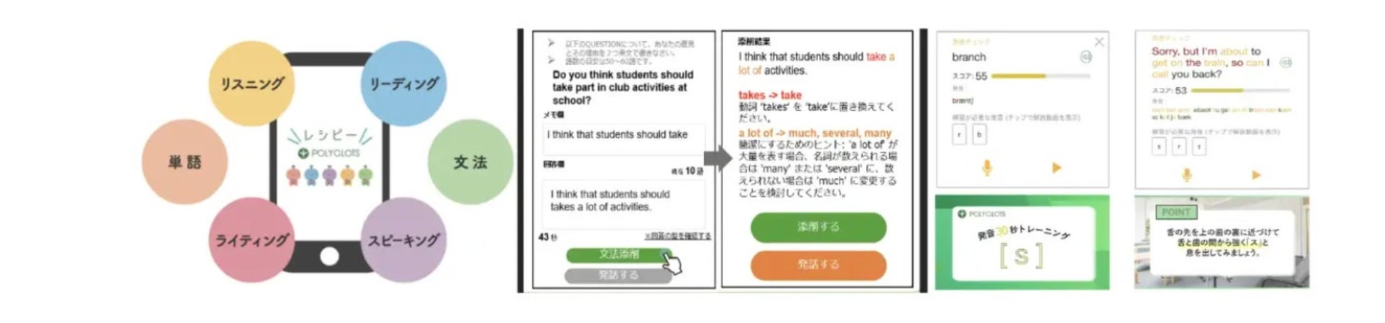 ・6技能全てを網羅した英語学習アプリ「レシピー」を利用した総合的な英語力の向上・AIにより、学習履歴や他学習者の成果の出た学習プロセスを分析し、一人一人に合わた日々の学習カリキュラムを生成