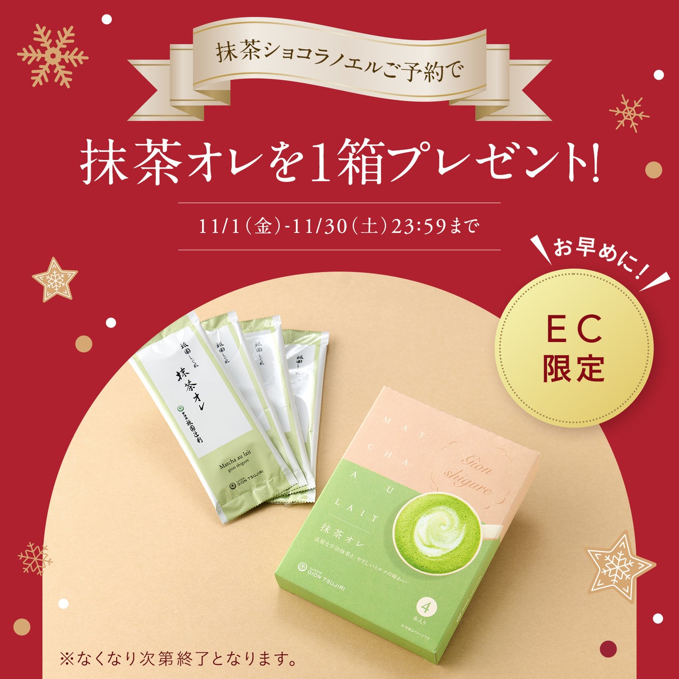 そして今回、11月中に公式オンラインショップ(https://x.gd/mbJEM)にてご予約された方限定で、祇園辻利のテイクアウトメニューとして人気の「抹茶オレ(30g×4袋)」を、1箱プレゼントすることを発表いたします。先行予約受付を開始、限定数量に達し次第終了いたしますので、ご予約はお早めに。