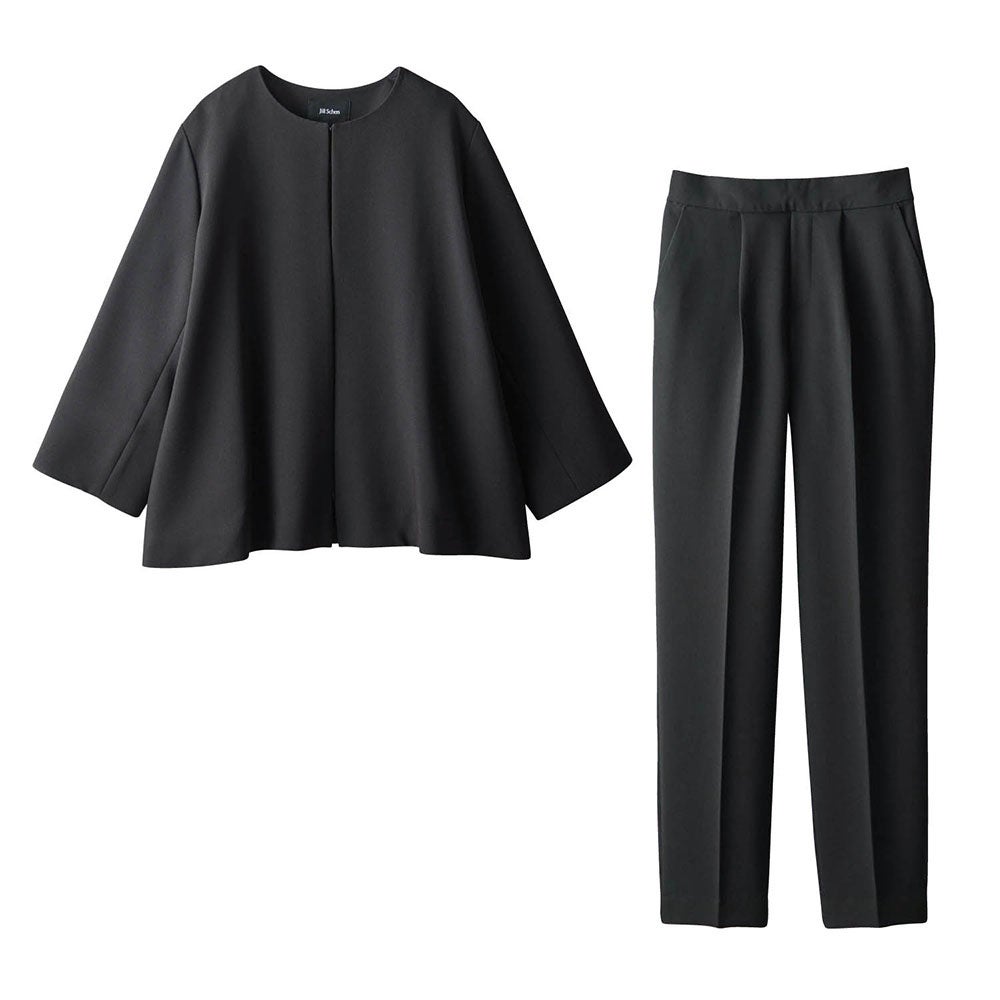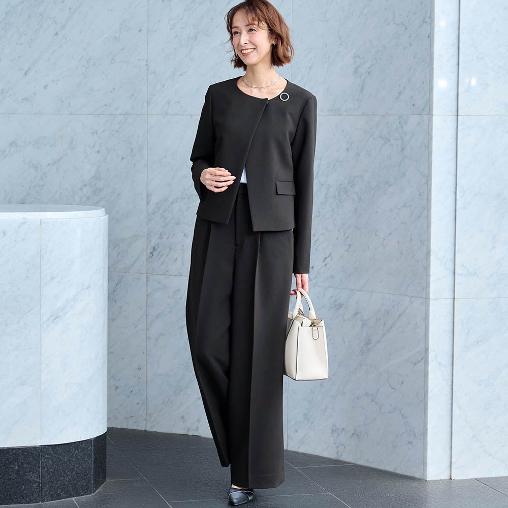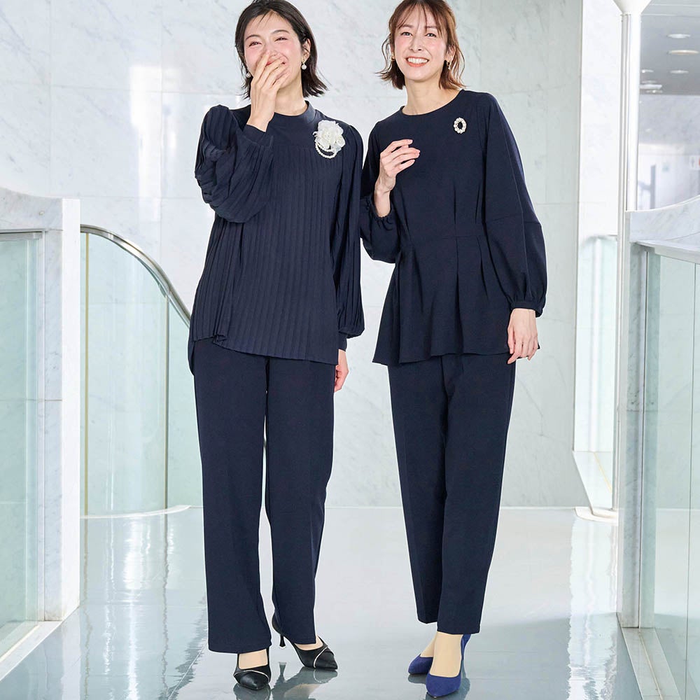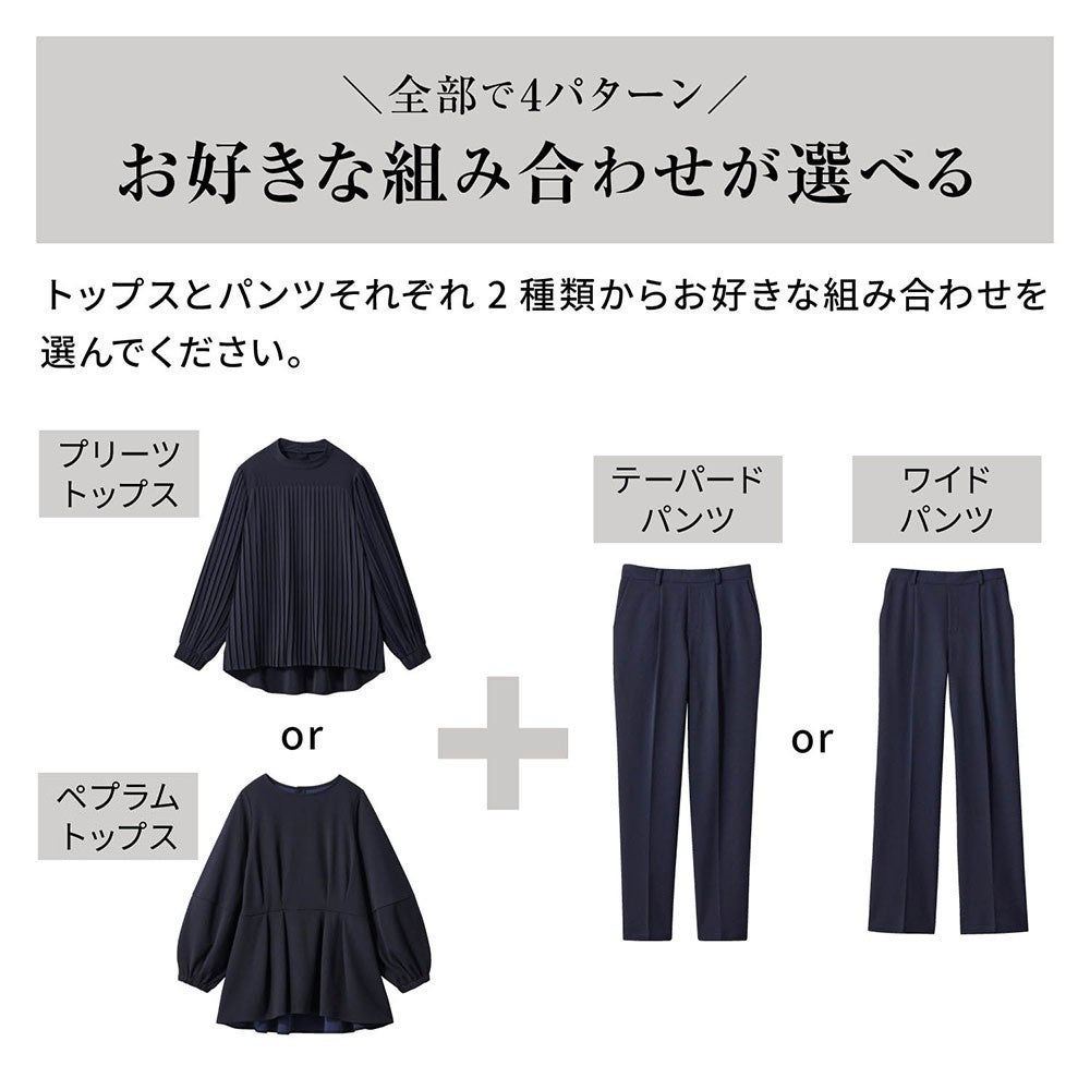 カラー/4タイプ(ダークネイビー(プリーツ×テーパード)、ダークネイビー(プリーツ×ワイド)、ダークネイビー(ペプラム×テーパード)、ダークネイビー(ペプラム×ワイド))