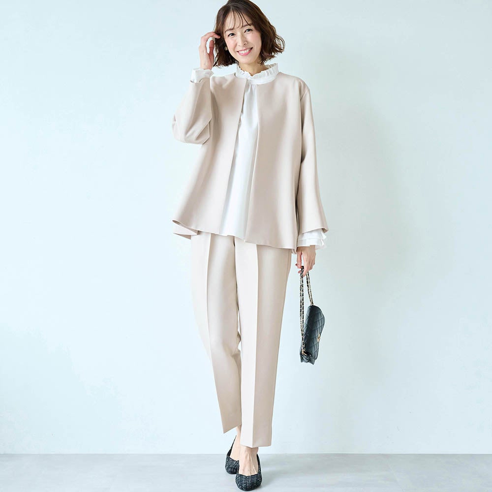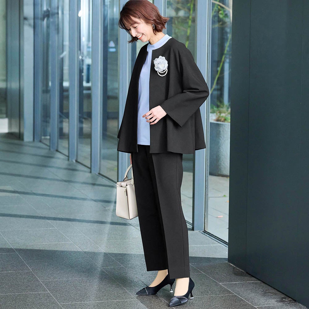 2018年より毎年ベルメゾン会員向けに行っている「卒入園・卒入学向けのフォーマルウェアに関するアンケート」では、「ツイードジャケットにワンピースといった『制服』のような定番のスタイルには飽きてしまった」「きちんとした印象は意識したい」「肩肘張らず自分らしくいられるスタイルでセレモニーに参加したい」といった声が、年々増えています。そこで、2025年度は、着心地の良さと着回ししやすいデザインを兼ね備えた「こなれ感」のあるフォーマルシリーズの展開を増やしました。お客様のご要望にお応えして、自宅で洗濯ができ、また最大5サイズ(Sから3L)までの豊富なサイズ展開で、パンツの股下は2サイズから長さを選択できる商品も取り揃えています。